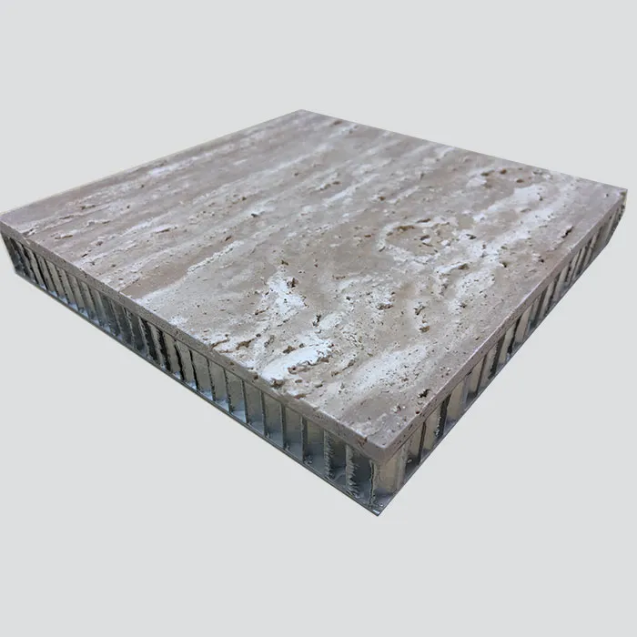Aluminium honingraat steen paneel is over het algemeen gemaakt van 3-5mm steen, 10-25mm aluminium honingraat paneel, gebonden en samengesteld door speciale lijm materiaal.